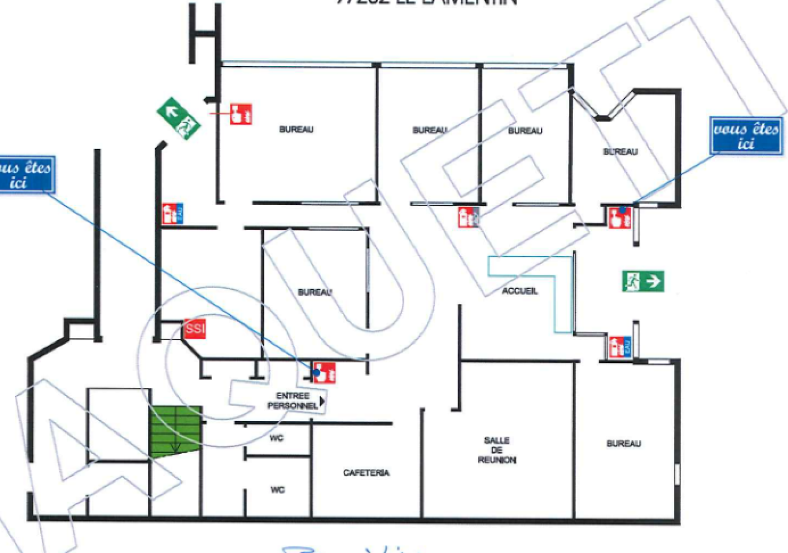 Bureaux individuels, salle de réunion, espace cafétéria, sanitaires attenant
